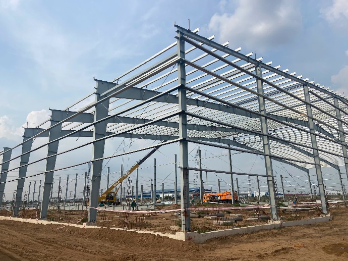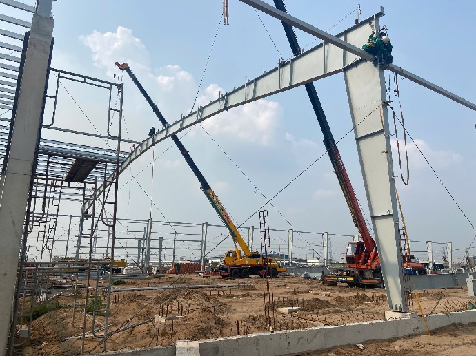 - Tập kết vật tư & thiết bị: Kết cấu thép, bu lông, bản mã, xà gồ, tấm lợp, thiết bị nâng, đồ bảo hộ...